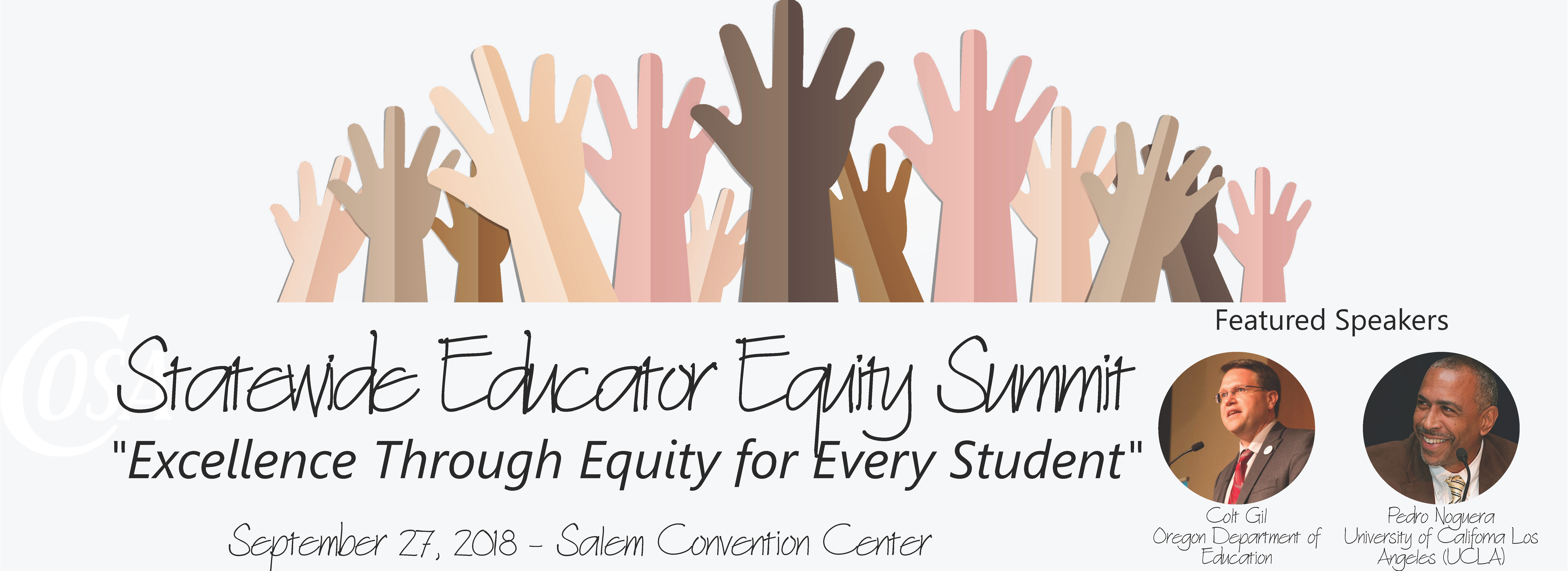 This conference is officially at capacity. Everyone from the waitling list has been notified and there will be no more additional space at the conference. There will also be no onsite registration. if you have any questions, please contact Meghan Cusick Olson at meghan@cosa.k12.or.us